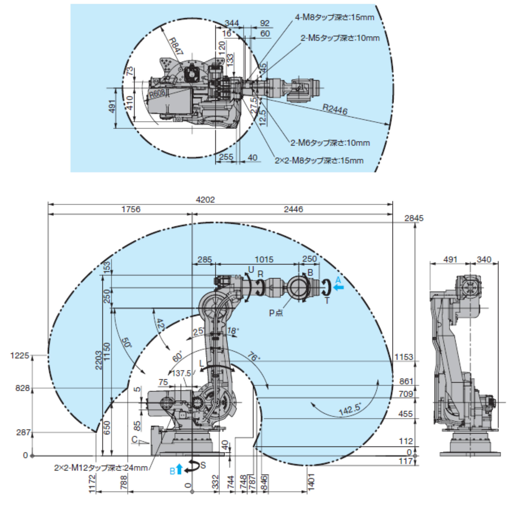 超大型負(fù)載,可對(duì)應(yīng)大型工件;全軸低功率輸出,無(wú)需設(shè)置安全柵欄,設(shè)備構(gòu)成簡(jiǎn)易。